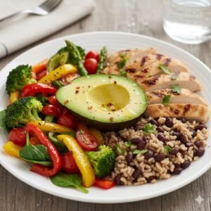 • Proteínas magras (pollo, ternera, pescado, legumbres, tofu…)